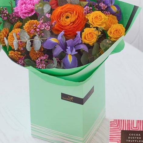 A handcrafted bouquet made by a local florist using the freshest blooms plus delicious chocolatey treats (afterall – it's Easter!). This classic bouquet will feature flowers in vibrant shades inspired by spring. Think tangerine, cerise, chartreuse and ochre.