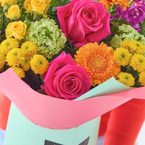 Make the most of Mother Nature's rainbow, with a gift box filled with beautifully bright blooms. Expertly arranged by a local florist it's a celebration of colour. The florist will chose the best blooms on the day, so your bouquet may look slightly different but it will be a lovely bright mix of flowers