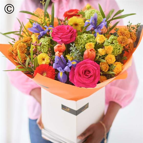 A handcrafted bouquet made by a local florist using the freshest blooms. This classic bouquet will feature flowers in vibrant shades inspired by spring. Think tangerine, cerise, chartreuse and ochre.